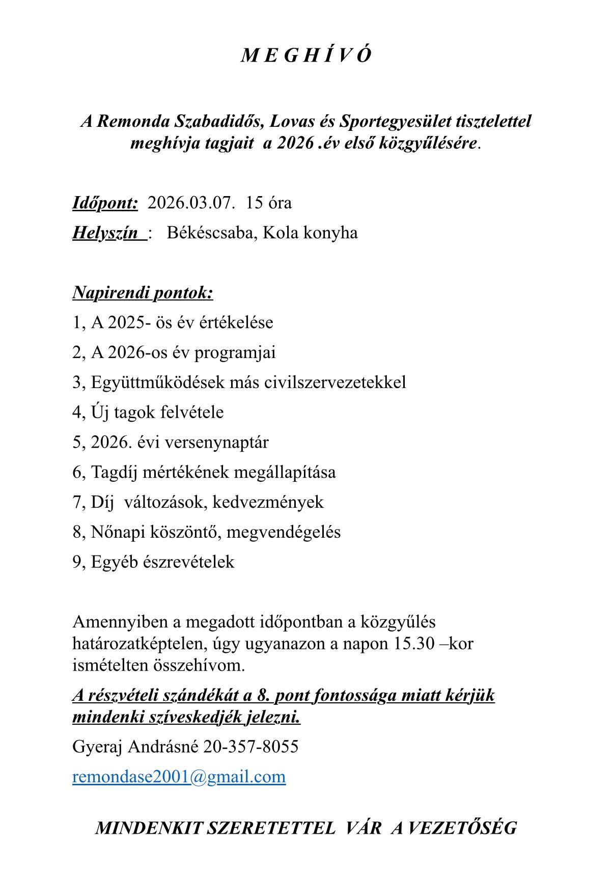 Gyeraj Andrásnénál: +36 20 357 8055